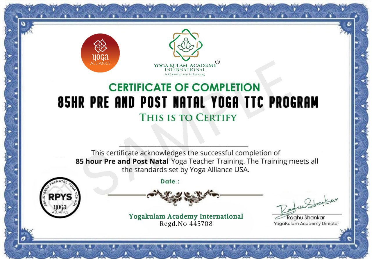 Upon completing our training, you will receive an 85-hour Yoga Alliance-certified certificate, enabling you to teach prenatal and postnatal yoga worldwide.
